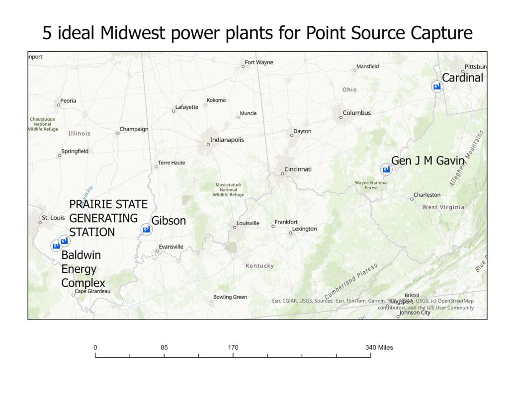 But when filtering even further, a set of Midwestern power plants stood out for their proximity to both types of storage. These sites — clustered in states like Illinois, Indiana, and Ohio — represent ideal PSC targets: they’re high-volume emitters and strategically located near geologic storage options.